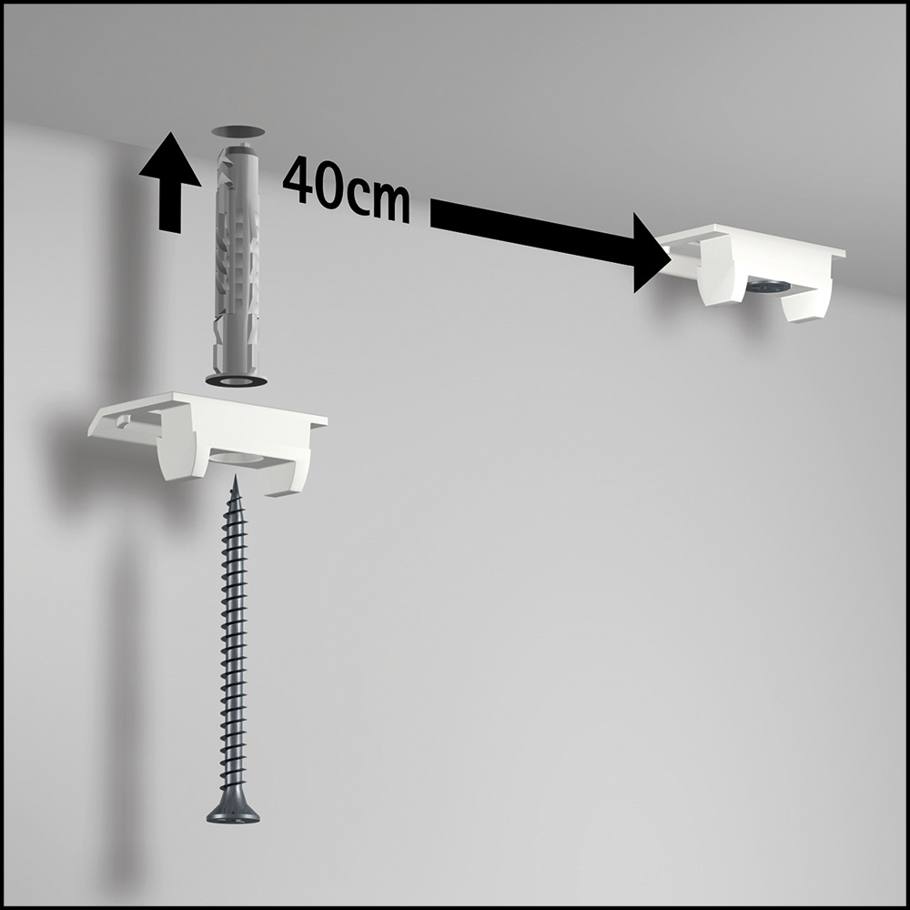 Die Deckenschiene wird mit einem speziellen Clickclip an der Decke befestigt. Montiert werden 3 Stück pro Meter.